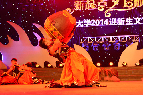 晚会于七点半准时开始,绚丽的灯光效果预热了晚会现场。本次的迎新晚会共有三个板块组成。第一板块是代表学校获得四川省第七届大学生艺术节的优秀获奖作品展演;第二板块是校艺术团各队伍的精彩呈现;第三板块由音乐、舞蹈、服装、体育等艺体类学院选送的专业、高水平节目组成。晚会首先由荣获本届大学生艺术节一等奖的大合唱《中国的星星》开场,接着是充满彝族文化风情的民族舞《凉山逐月梦》精彩亮相。话剧《大学小事》通过讲述关于加入学生组织的那些事,让同学们倍感亲切之余也宣传了青春正能量。由舞蹈学院选送的群舞《尼苏扎夸》展现了一段传奇民族英雄的故事,将晚会气氛推向高潮。紧接着的双人舞《肩头上的梦》通过讲述一对滑竿父子的浓浓亲情,同时也激励同学们执着追梦,永不言弃。由音乐学院选送的歌曲《拯救》与体育学院选送的《舞狮》让晚会高潮迭起,全场掌声不息。精彩的节目轮番登场,令人目不暇接,同学们挥舞荧光棒,使得现场气氛更加欢快热闹。