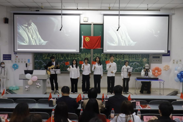 卓飞老师为本次活动作总结点评。他高度肯定同学们在内容策划、舞台呈现与精神传递上的卓越表现,强调 “抗战精神在新时代依然熠熠生辉”,并鼓励青年学子将爱国情、强国志、报国行融入日常学习与生活。