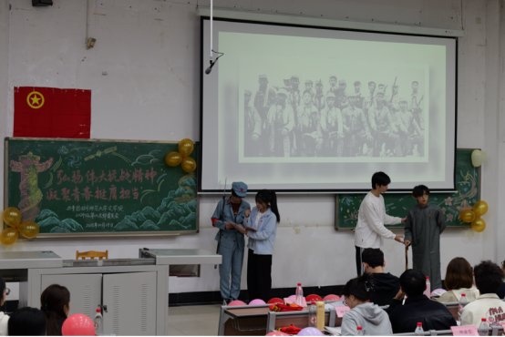 最后,本次活动在校歌声中落下帷幕,朱美玲老师与校团委包浩民老师分别对活动进行点评,在肯定2024级6支部活动环节衔接紧密、形式新颖独特、兼具历史厚重感与时代象征性的基础上,也对广大文苑学子寄予了殷切期望,鼓励大家从活动中汲取精神力量,用笔墨定格抗战记忆,以实干践行青春担当,在民族复兴的壮阔征程中,书写属于青年一代的精彩华章。