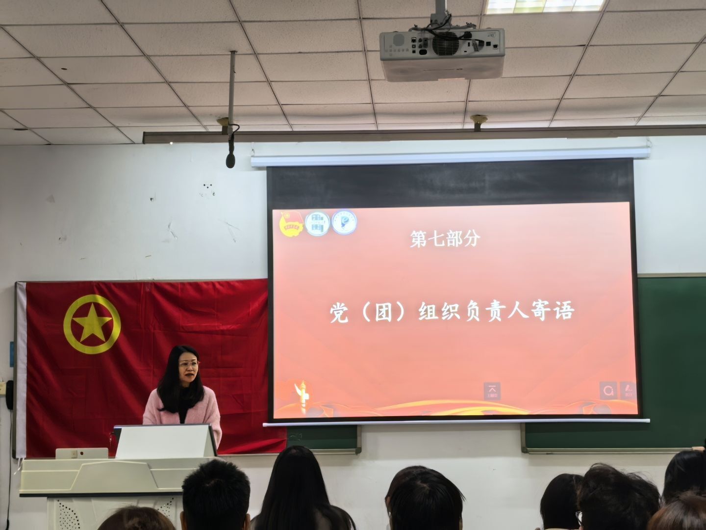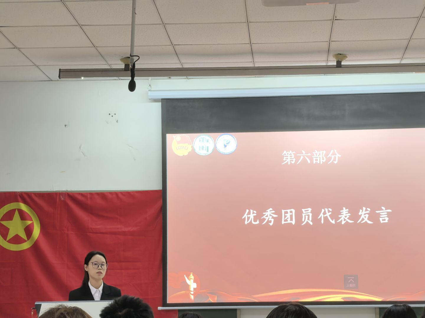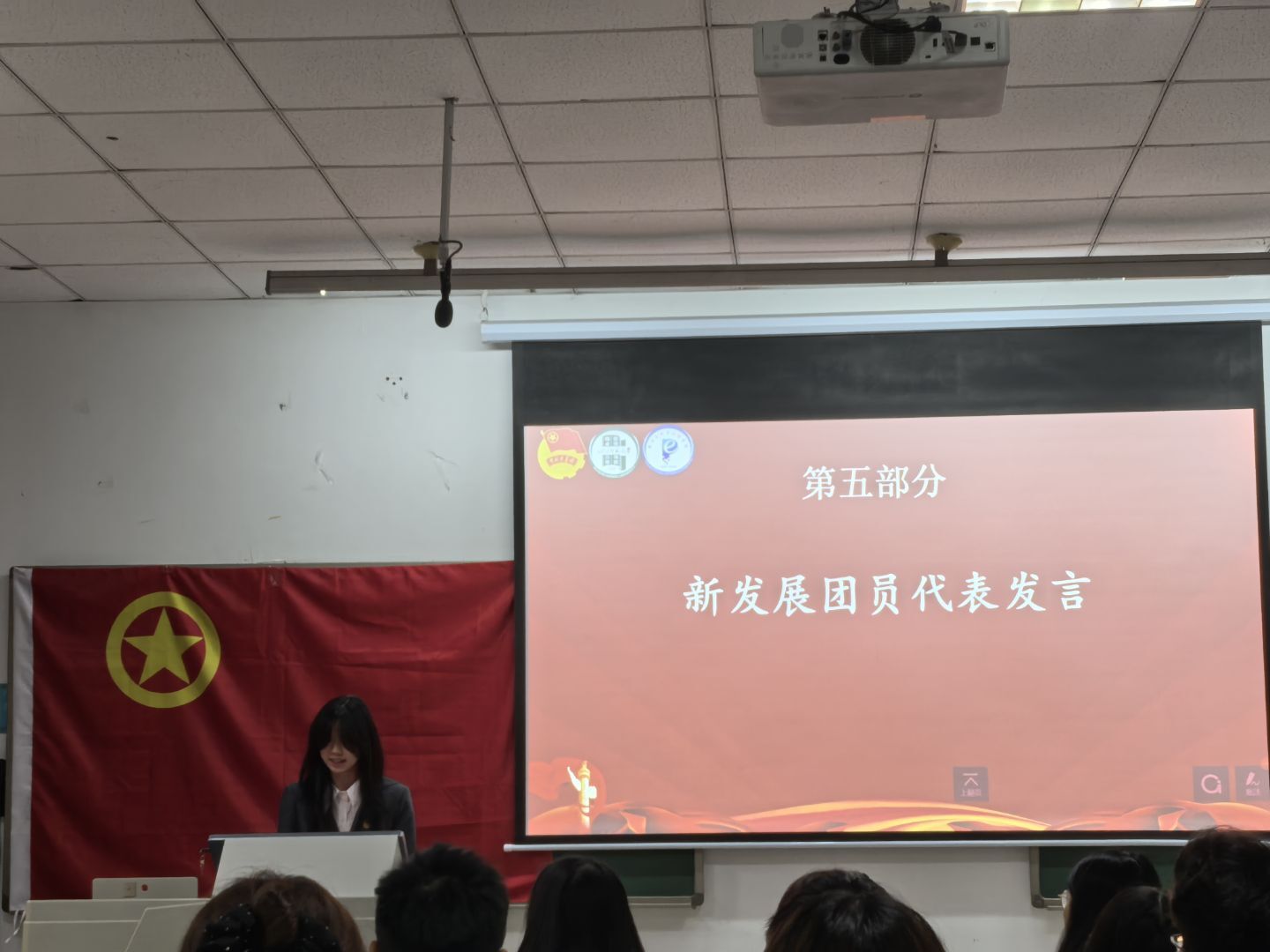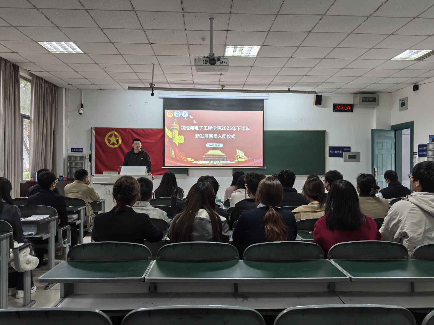 物理学2025级1班陈星燕同学作为新团员代表发言,她承诺将以入团为人生新起点,严守团的章程、遵纪守法、勤奋学习、锤炼品格,用实际行动践行今日入团誓言。