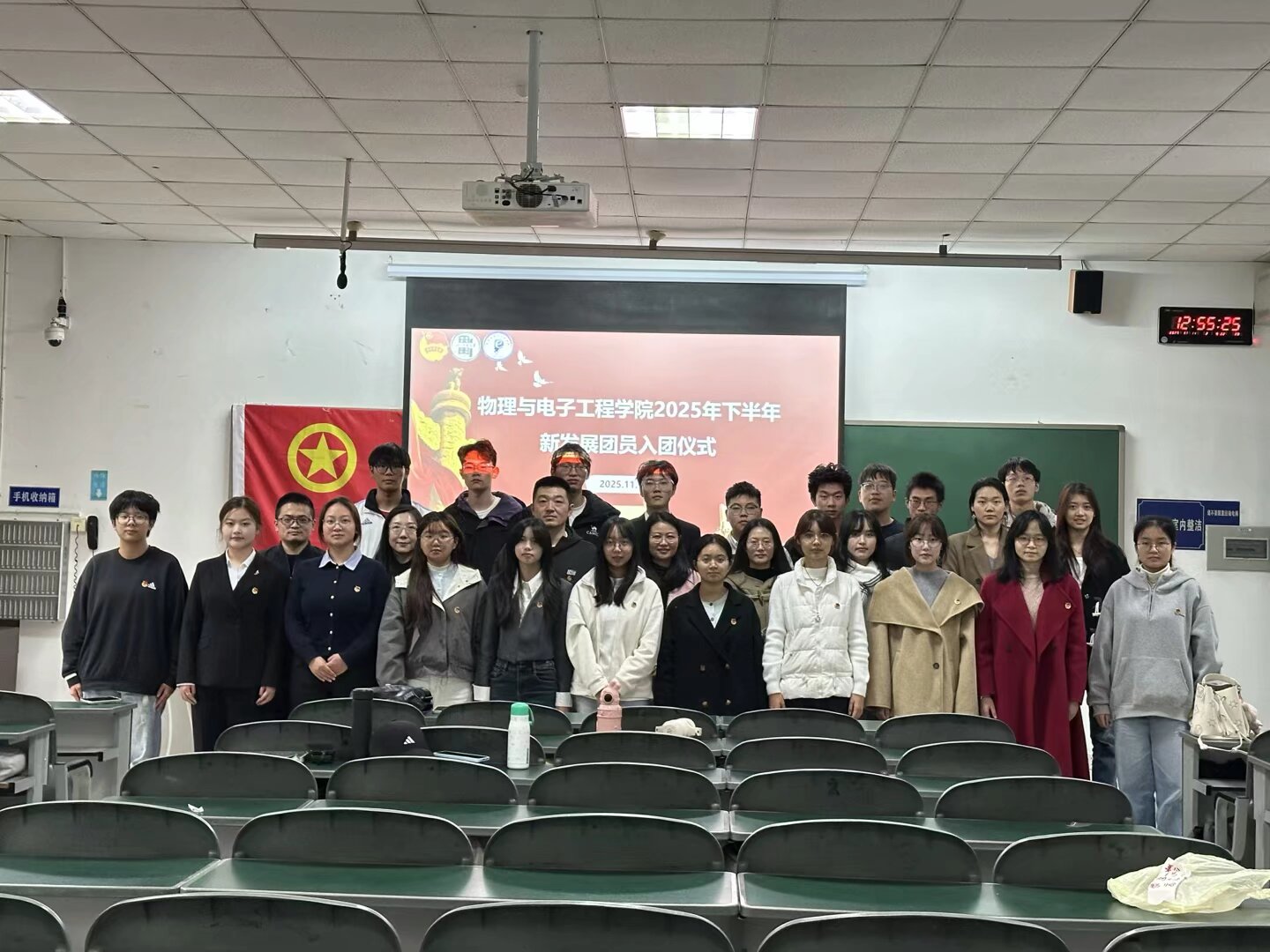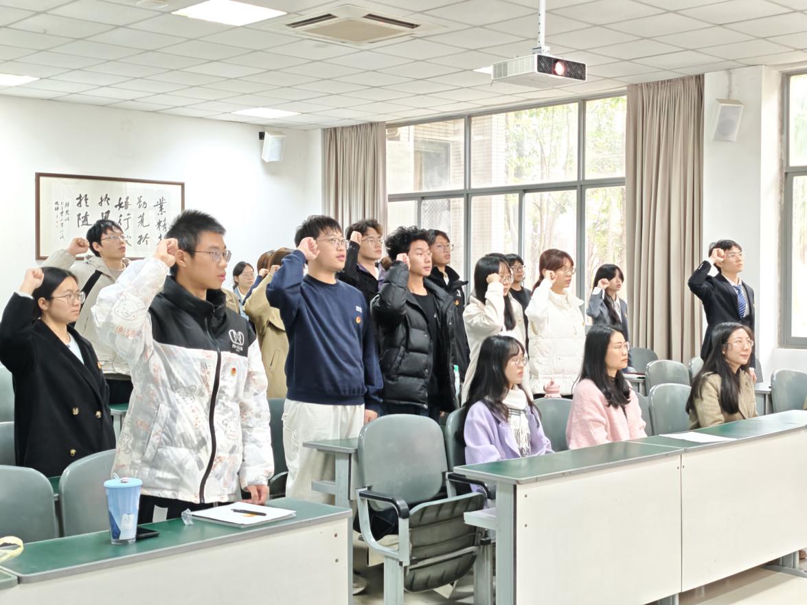 为共青团注入新生力量,引领青年学生坚定理想信念、厚植家国情怀,11月11日,物理与电子工程学院在第一教学楼A107举行2025年下半年新发展团员入团仪式。学院党委副书记、纪委书记钟亚秋,分团委书记、学工办主任李科,各年级辅导员与22名新发展团员共同见证了这一庄严时刻。